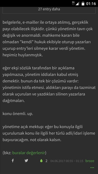 Herhangi bir hukuksuz mesajı olmamasına rağmen ekşi sözlük yönetimi tarafından uçurulan eski yazardır. Tek yazdığı öyle bir iddia gerçek olabilir sözüdür. Hukuka aykırı mesaj saymışlar ve uçurmuşlardır beni. Demekki gizlenen ve yönetimi rahatsız eden bir şeyler hala var.